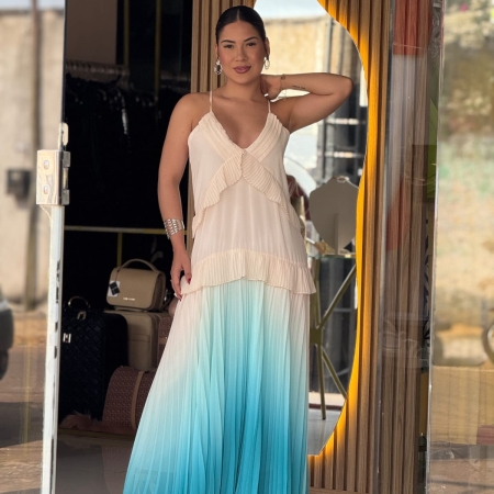 • Vestido Longo Estampado Frente Única Lança Perfume LP