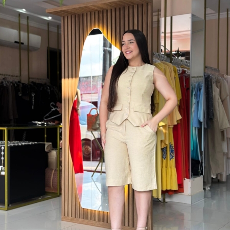 • Conjunto bermuda jorts e colete com cinto Egoiste