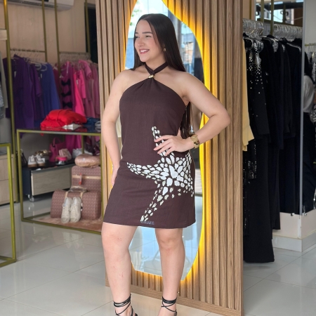 • Vestido Curto Sem Manga Com Linho Lança Perfume LP
