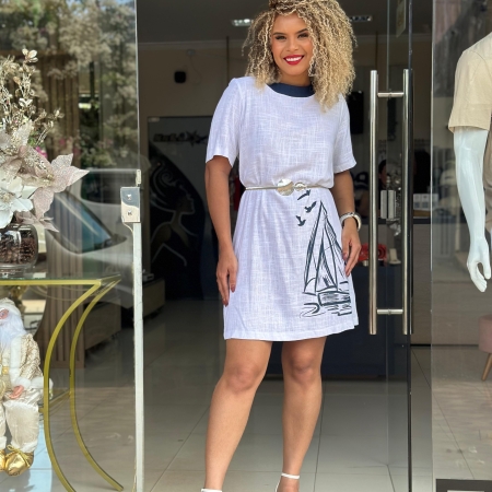 • VESTIDO MANGA CURTA COM LINHO MY FAV.