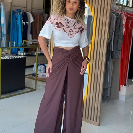 • Calça Wide Leg Cintura Alta Estampada Lança Perfume LP