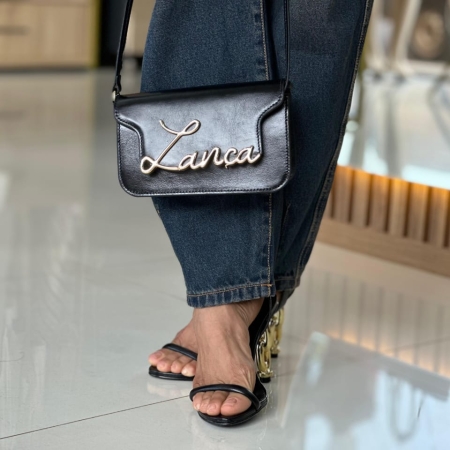 • Conjunto Calça Preta Com Bolso Em PU e Blusa Curta Sem Mangas Lança Perfume LP