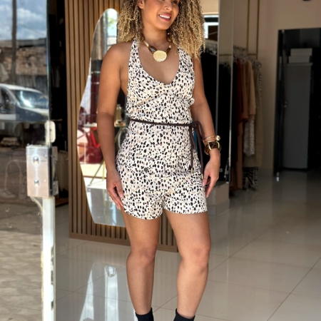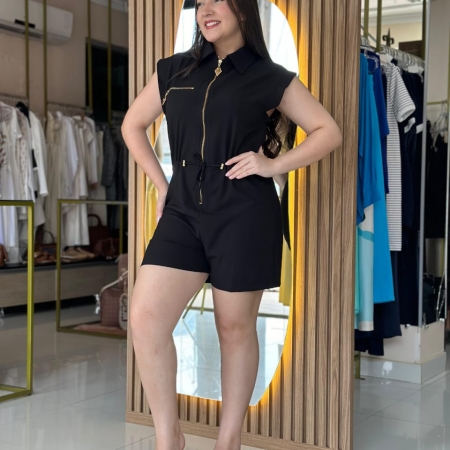 • Macacão Curto Suede Com Lapela My Favorite Things