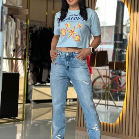 • T-shirt Baby Look Com Aplicação Shine Lança Perfume LP