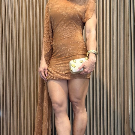 • MY FAV. VESTIDO CURTO DE RENDA ASSIMETRICO