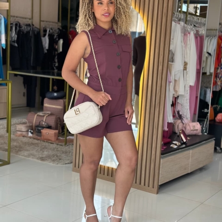 • Macacão Curto Suede Com Lapela My Favorite Things