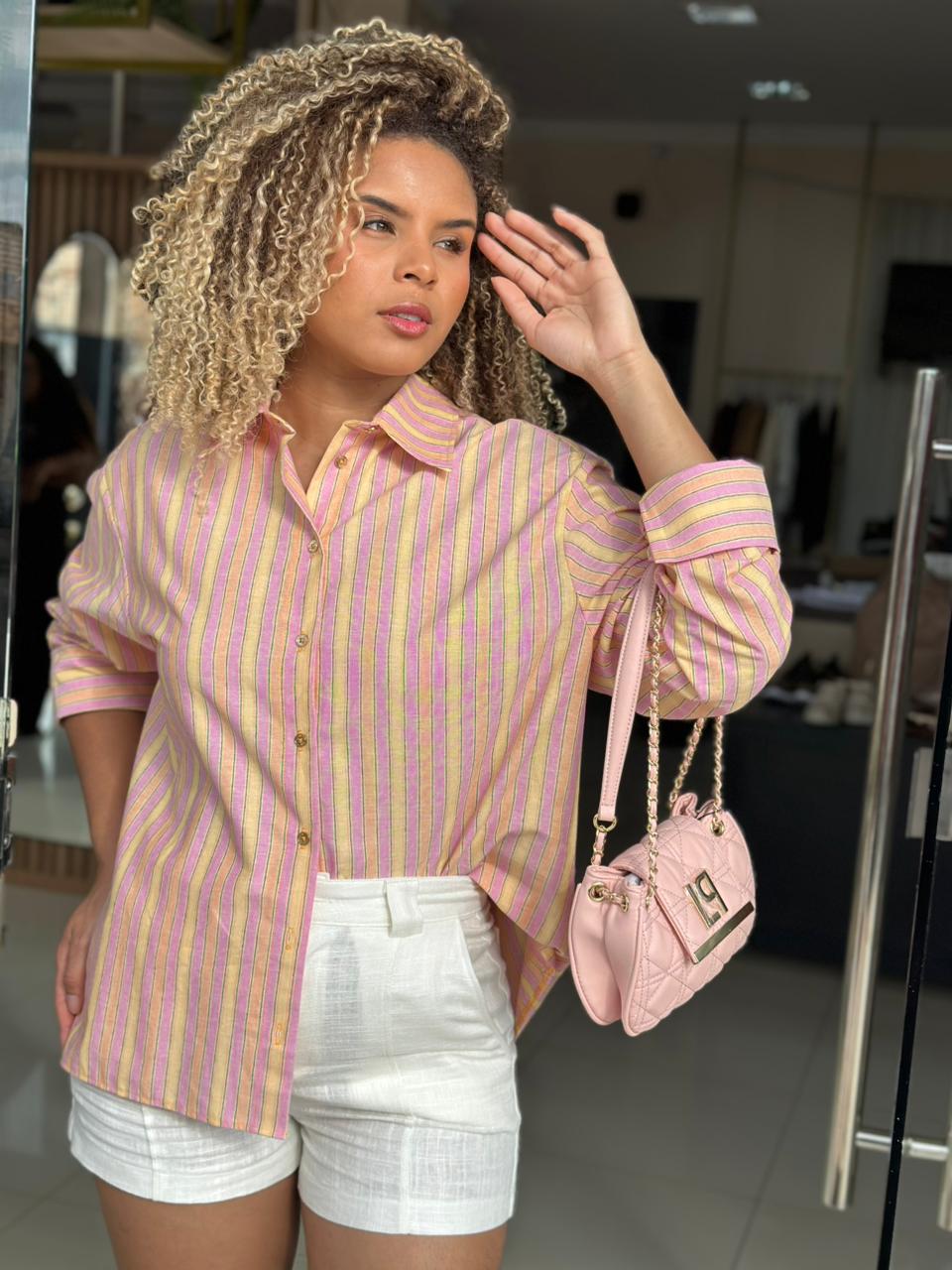 CAMISA OVERSIZED MANGA LONGA ROSA LISTRADA