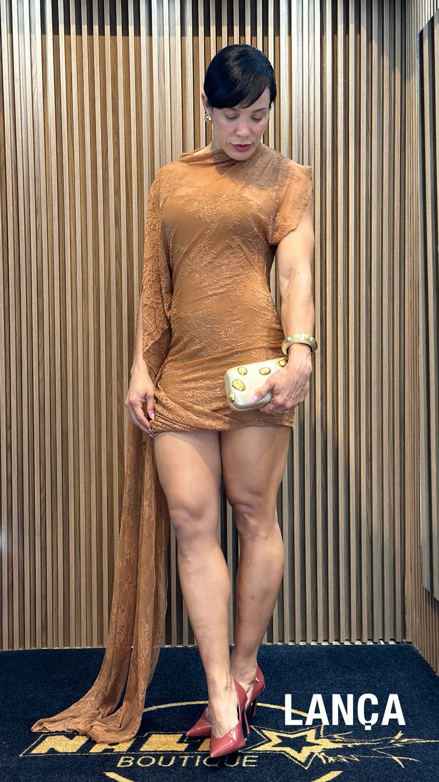MY FAV. VESTIDO CURTO DE RENDA ASSIMETRICO