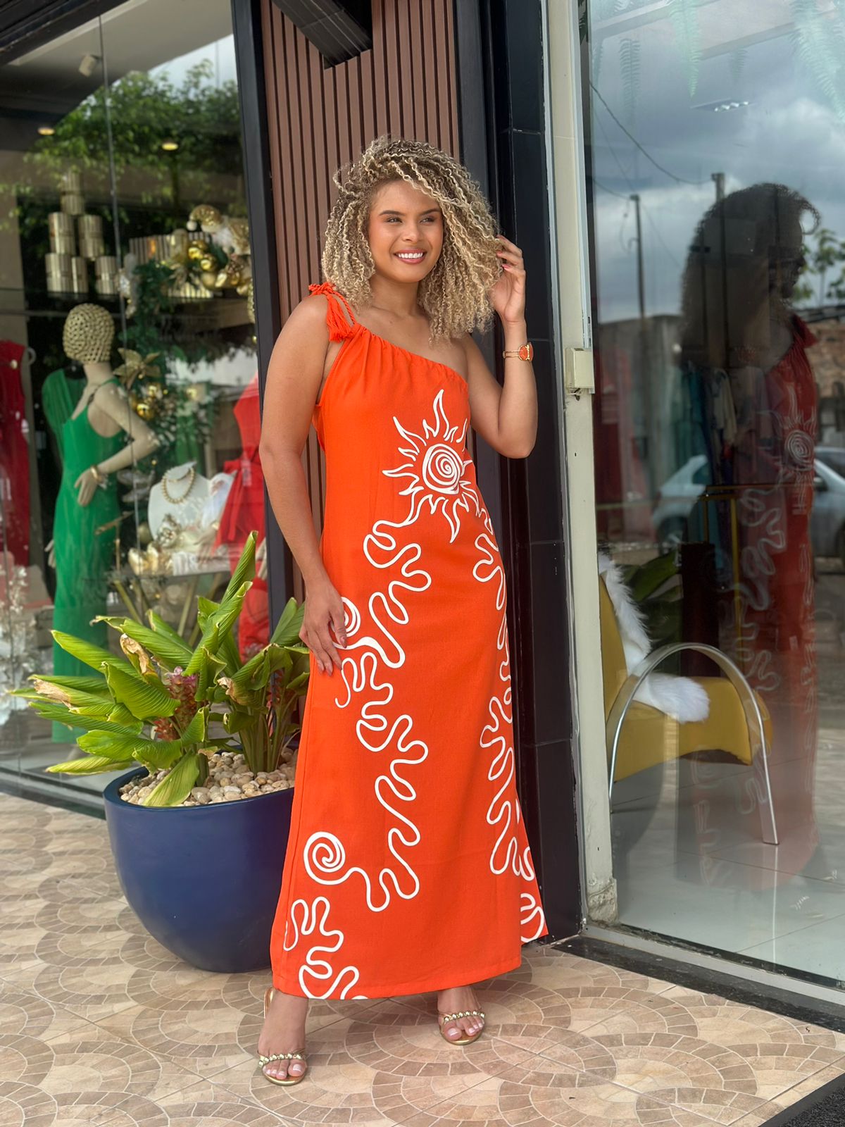 LP VESTIDO SUPER MIDI OMBRO UNICO COM LINHO
